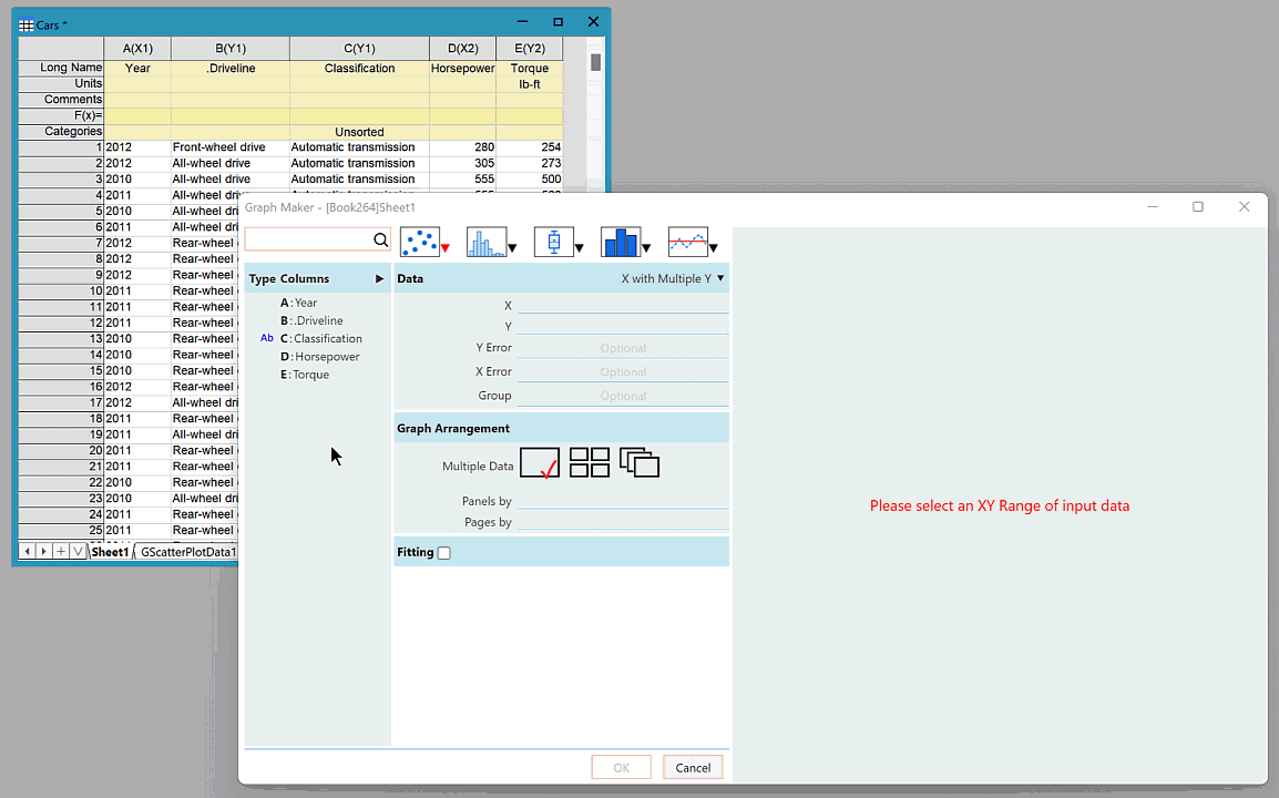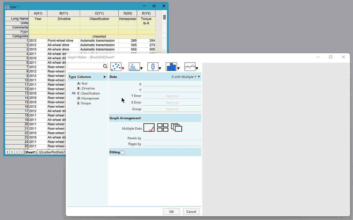 When you open the Graph Maker dialog, you’ll find several general templates that help you quickly create graphs from your data. Begin by selecting the graph type you want.