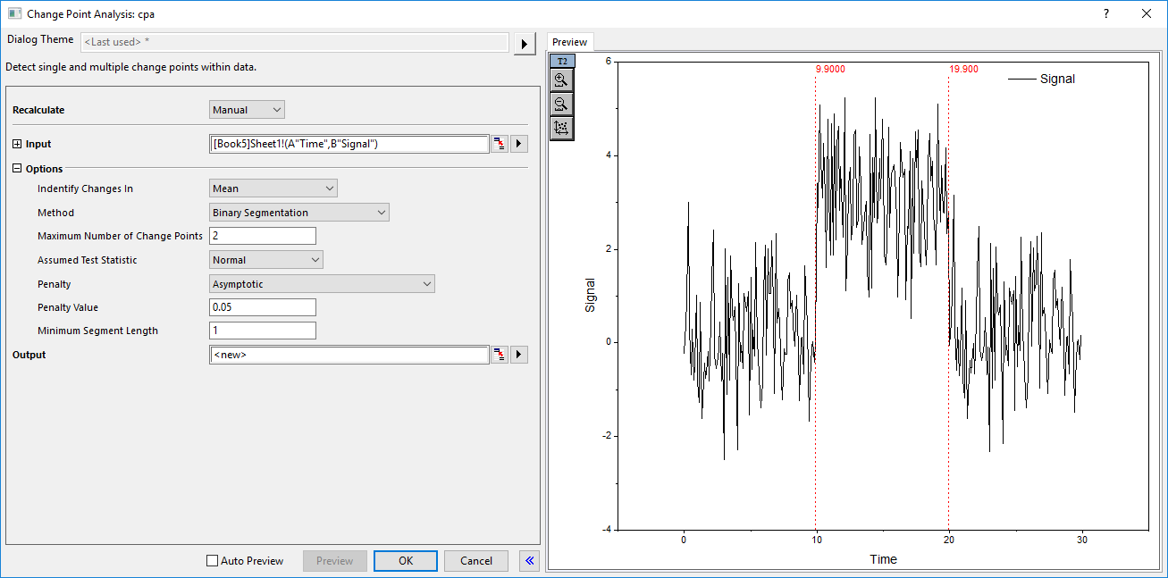 - Minimum Segment Length: Minimum number of data points between changes (default is 1).